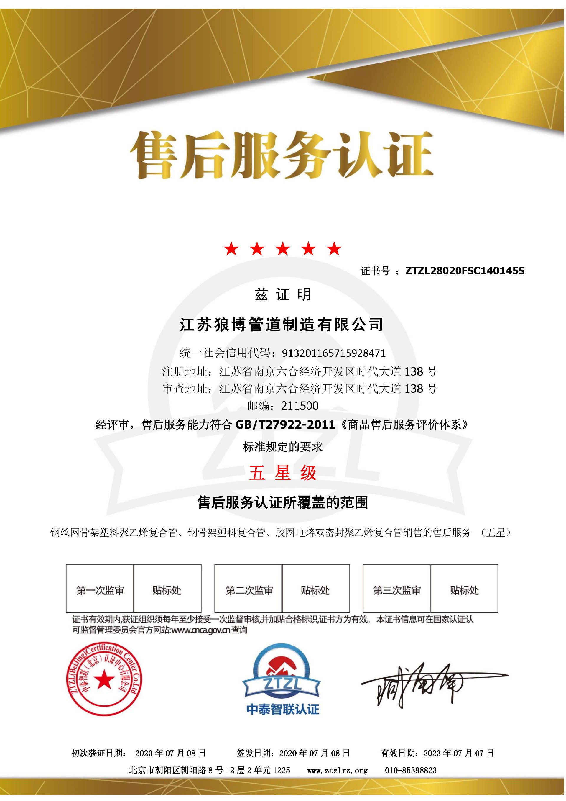 產品銷售只是狼博眾多服務中的一個環節!當貨車駛離狼博生產基地的一刻,狼博的售后服務已經啟動。無論您在管道施工上有任何疑問,都可以聯系狼博,我們將為您提供管道安裝技術服務、施工服務、維護服務等一系列豐富的售后服務。